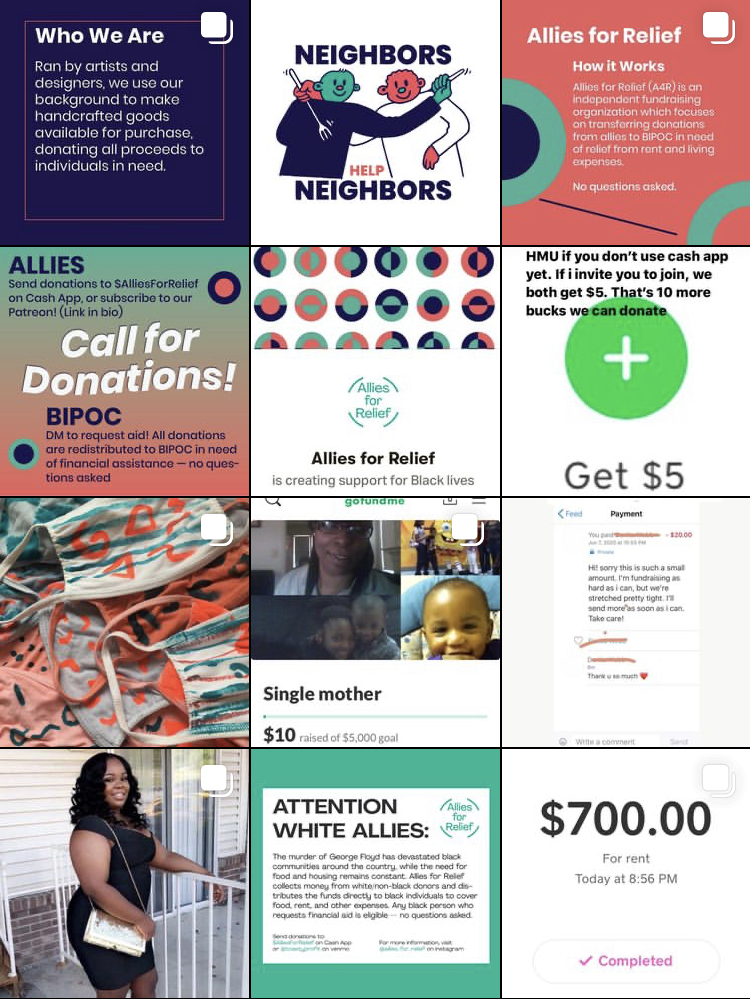 Allies for relief social media compaign. Logo design and art direction, 2020